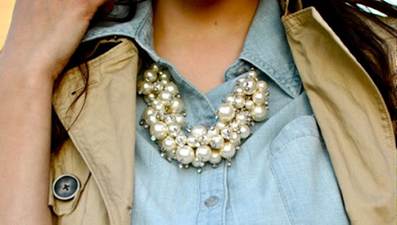 Escolha uma camisa (branca, jeans ou em uma cor forte como o azul Klein) e use o colar embaixo da gola. É bem moderno!